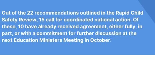 Together, these recommendations provide a blueprint for a stronger, safer system, one that empowers educators, supports families and ensures that the wellbeing of every child remains the highest priority.